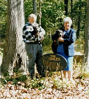 October, 1994 - A couple of days before going to the Skye Terrier Club of America Specialty - Montgomery Weekend, Maida and I first traveled to “Skye Mecca” - the home of Ben and Donna Dale, Gleanntan. This photo was taken by Donna from the deck soon after we arrived. We went to Gettysburg first to pick up our new puppy, Fiona, who was born that July. You can probably guess who I am holding in my arms.